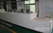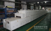 2、外形尺寸(約):總長24000mm*總高1690mm*總寬1220mm,地面到網帶的高度為850mm,爐體內進料高度為150mm;烘干部分總長14000mm,分7段獨立控溫(每段4個測溫熱電偶),每段2000mm。冷卻段長4000mm,UV預留區長2000mm,前后緩沖區各長500mm,進出料部分長1500mm, 爐體前后裝有急停開關。
